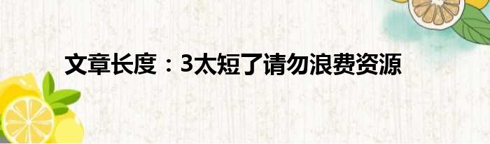 大家好,今天小六子来为大家解答以下的问题,关于文章长度:3太短了请勿浪费资源这个很多人还不知道,现在让我们一起来看看吧!