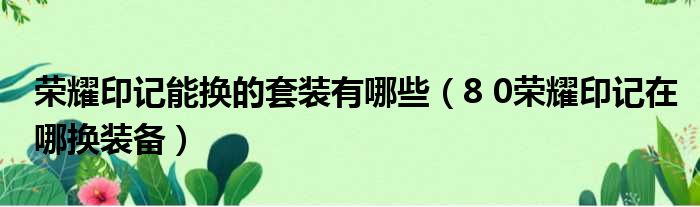导读 大家好,今天小六子来为大家解答以下的问题,关于荣耀印记能换的套装有哪些,8 0荣耀印记在哪换装备这个很多人还不知道,现在让我们一起来
