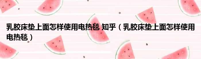 乳胶床垫上面怎样使用电热毯 知乎(乳胶床垫上面怎样使用电热毯)