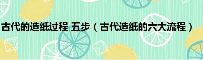 大家好,今天小六子来为大家解答以下的问题,关于古代的造纸过程 五步,古代造纸的六大流程这个很多人还不知道,现在让我们一起来看看吧!