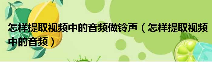 怎样提取视频中的音频做铃声(怎样提取视频中的音频)