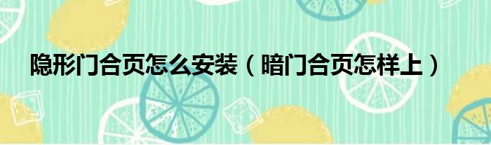 隐形门合页怎么安装(暗门合页怎样上)