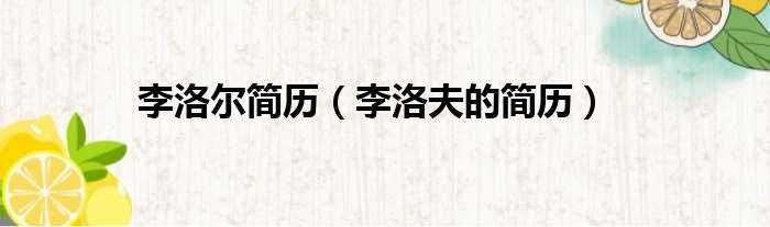 大家好,今天小六子来为大家解答以下的问题,关于李洛尔简历,李洛夫的简历这个很多人还不知道,现在让我们一起来看看吧!