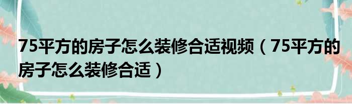 75平方的房子怎么装修合适视频(75平方的房子怎么装修合适)