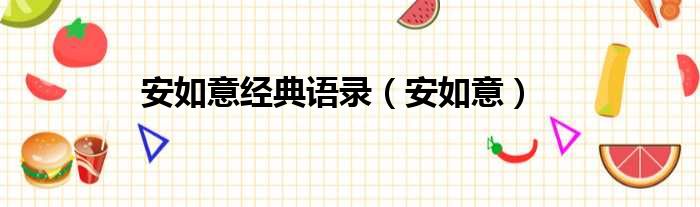 大家好,今天小六子来为大家解答以下的问题,关于安如意经典语录,安如意这个很多人还不知道,现在让我们一起来看看吧!