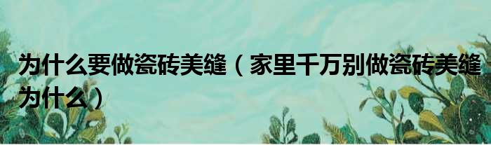 为什么要做瓷砖美缝(家里千万别做瓷砖美缝为什么)