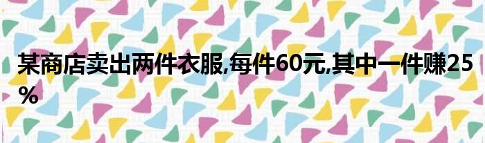 某商店卖出两件衣服,每件60元,其中一件赚25%