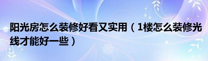 阳光房怎么装修好看又实用(1楼怎么装修光线才能好一些)