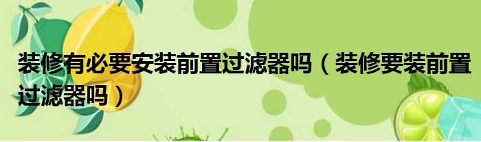 装修有必要安装前置过滤器吗(装修要装前置过滤器吗)