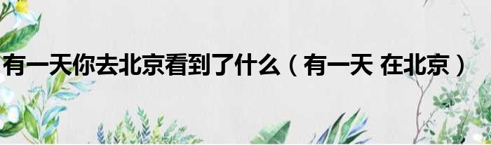 导读 大家好,今天小六子来为大家解答以下的问题,关于有一天你去北京看到了什么,有一天 在北京这个很多人还不知道,现在让我们一起来看看吧!1