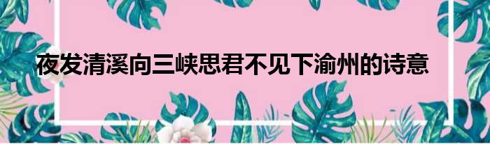 大家好,今天小六子来为大家解答以下的问题,关于夜发清溪向三峡思君不见下渝州的诗意这个很多人还不知道,现在让我们一起来看看吧!