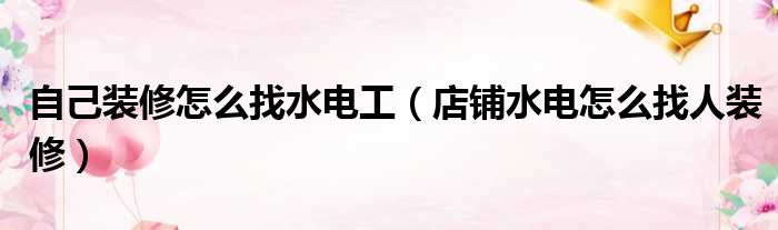 自己装修怎么找水电工(店铺水电怎么找人装修)