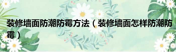 装修墙面防潮防霉方法(装修墙面怎样防潮防霉)