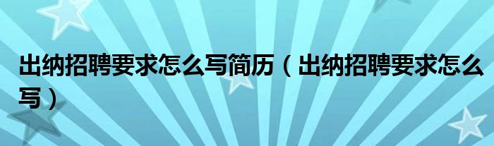 出纳招聘要求怎么写简历(出纳招聘要求怎么写)