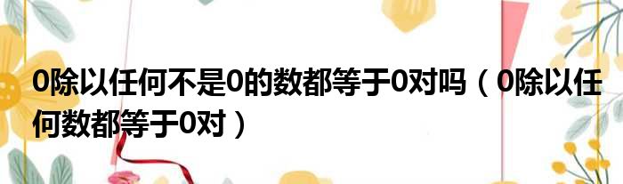 导读 大家好,今天小六子来为大家解答以下的问题,关于0除以任何不是0的数都等于0对吗,0除以任何数都等于0对这个很多人还不知道,现在让我们一起