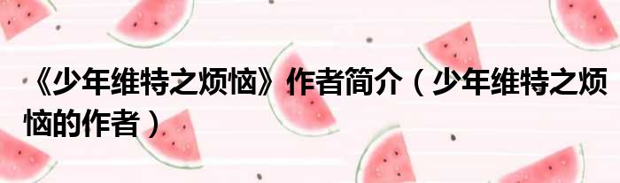 《少年维特之烦恼》作者简介(少年维特之烦恼的作者)