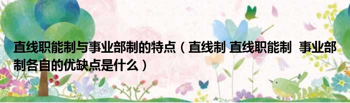 直线职能制与事业部制的特点(直线制 直线职能制 事业部制各自的优缺点是什么)