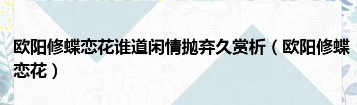 欧阳修蝶恋花谁道闲情抛弃久赏析(欧阳修蝶恋花)