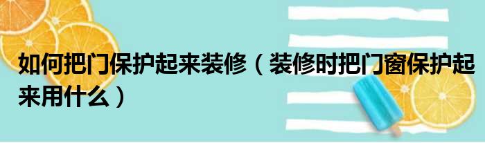 如何把门保护起来装修(装修时把门窗保护起来用什么)