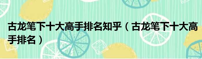 古龙笔下十大高手排名知乎(古龙笔下十大高手排名)