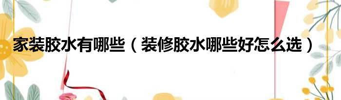 家装胶水有哪些(装修胶水哪些好怎么选)