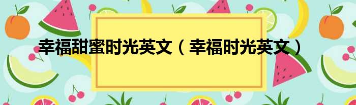 大家好,今天小六子来为大家解答以下的问题,关于幸福甜蜜时光英文,幸福时光英文这个很多人还不知道,现在让我们一起来看看吧!