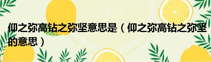 导读 大家好,今天小六子来为大家解答以下的问题,关于仰之弥高钻之弥坚意思是,仰之弥高钻之弥坚的意思这个很多人还不知道,现在让我们一起来看