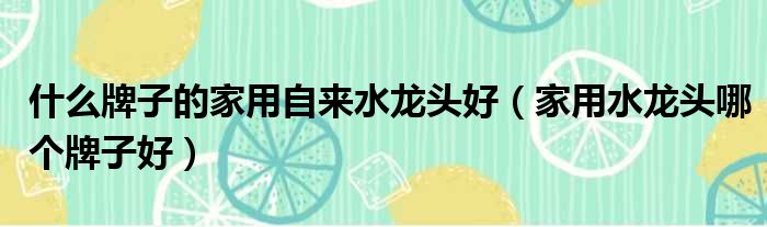 什么牌子的家用自来水龙头好(家用水龙头哪个牌子好)