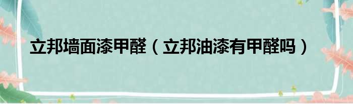 立邦墙面漆甲醛(立邦油漆有甲醛吗)