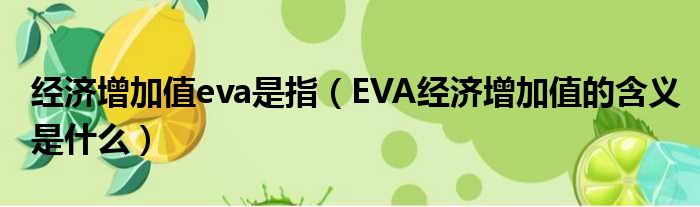 经济增加值eva是指(EVA经济增加值的含义是什么)
