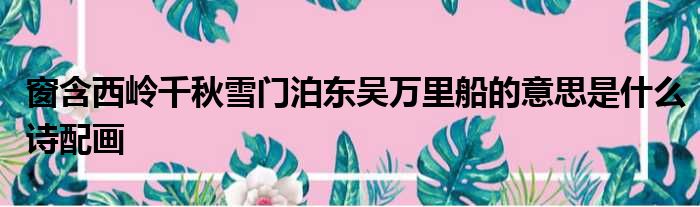 导读 大家好,今天小六子来为大家解答以下的问题,关于窗含西岭千秋雪门泊东吴万里船的意思是什么诗配画这个很多人还不知道,现在让我们一起来看