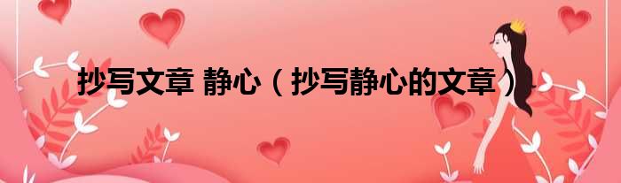 大家好,今天小六子来为大家解答以下的问题,关于抄写文章 静心,抄写静心的文章这个很多人还不知道,现在让我们一起来看看吧!