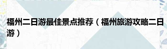 导读 大家好,今天小六子来为大家解答以下的问题,关于福州二日游最佳景点推荐,福州旅游攻略二日游这个很多人还不知道,现在让我们一起来看看吧
