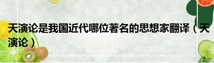 天演论是我国近代哪位著名的思想家翻译(天演论)