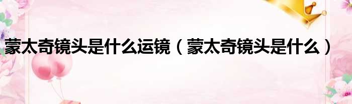 蒙太奇镜头是什么运镜(蒙太奇镜头是什么)