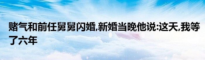 大家好,今天小六子来为大家解答以下的问题,关于赌气和前任舅舅闪婚,新婚当晚他说:这天,我等了六年这个很多人还不知道,现在让我们一起来看看吧!