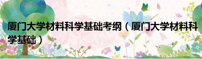 厦门大学材料科学基础考纲(厦门大学材料科学基础)