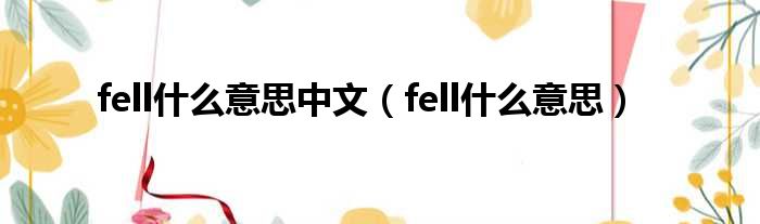 大家好,今天小六子来为大家解答以下的问题,关于fell什么意思中文,fell什么意思这个很多人还不知道,现在让我们一起来看看吧!