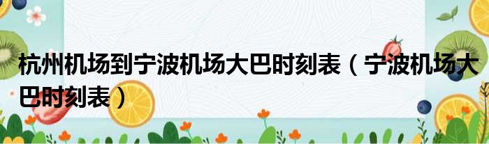 杭州机场到宁波机场大巴时刻表(宁波机场大巴时刻表)