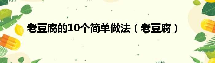 导读 大家好,今天小六子来为大家解答以下的问题,关于老豆腐的10个简单做法,老豆腐这个很多人还不知道,现在让我们一起来看看吧!1、老豆腐的制