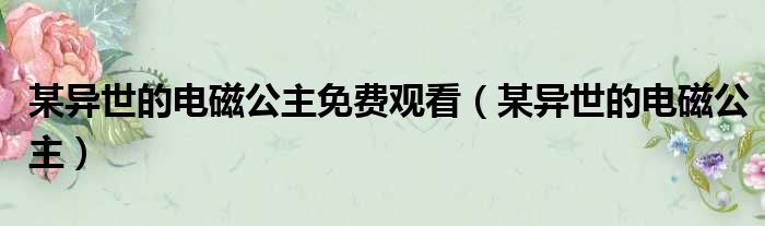 某异世的电磁公主免费观看(某异世的电磁公主)