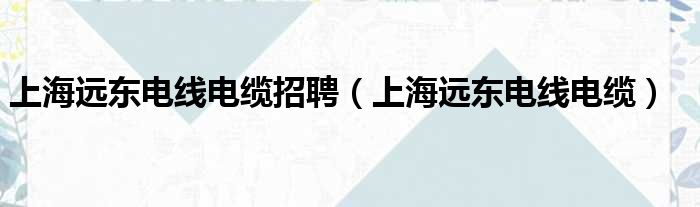 hello,我是51房产的小叶子,不少朋友对于上海远东电线电缆招聘,上海远东电线电缆还不是很清楚,接下来我给大家说一说