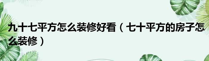 九十七平方怎么装修好看(七十平方的房子怎么装修)