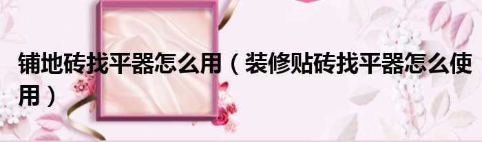铺地砖找平器怎么用(装修贴砖找平器怎么使用)