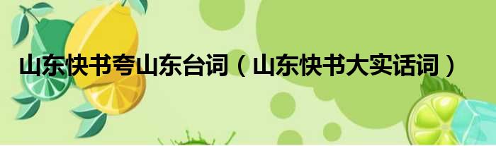 大家好,今天小六子来为大家解答以下的问题,关于山东快书夸山东台词,山东快书大实话词这个很多人还不知道,现在让我们一起来看看吧!