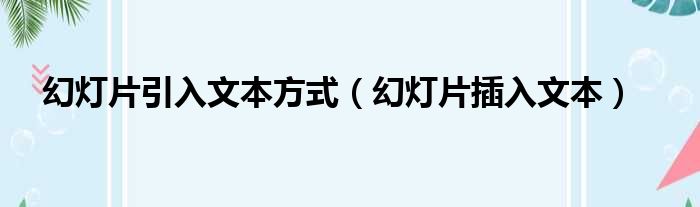 大家好,今天小六子来为大家解答以下的问题,关于幻灯片引入文本方式,幻灯片插入文本这个很多人还不知道,现在让我们一起来看看吧!