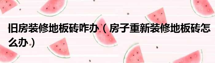 旧房装修地板砖咋办(房子重新装修地板砖怎么办)