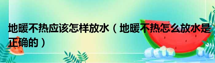 地暖不热应该怎样放水(地暖不热怎么放水是正确的)