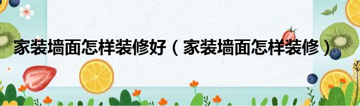 家装墙面怎样装修好(家装墙面怎样装修)