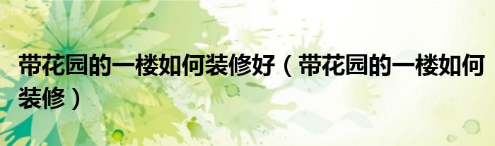 带花园的一楼如何装修好(带花园的一楼如何装修)